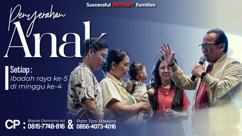 Pelayanan Baptisan dan Penyerahan Anak dialayani pada Minggu ke-4 di ibadah Raya ke-5