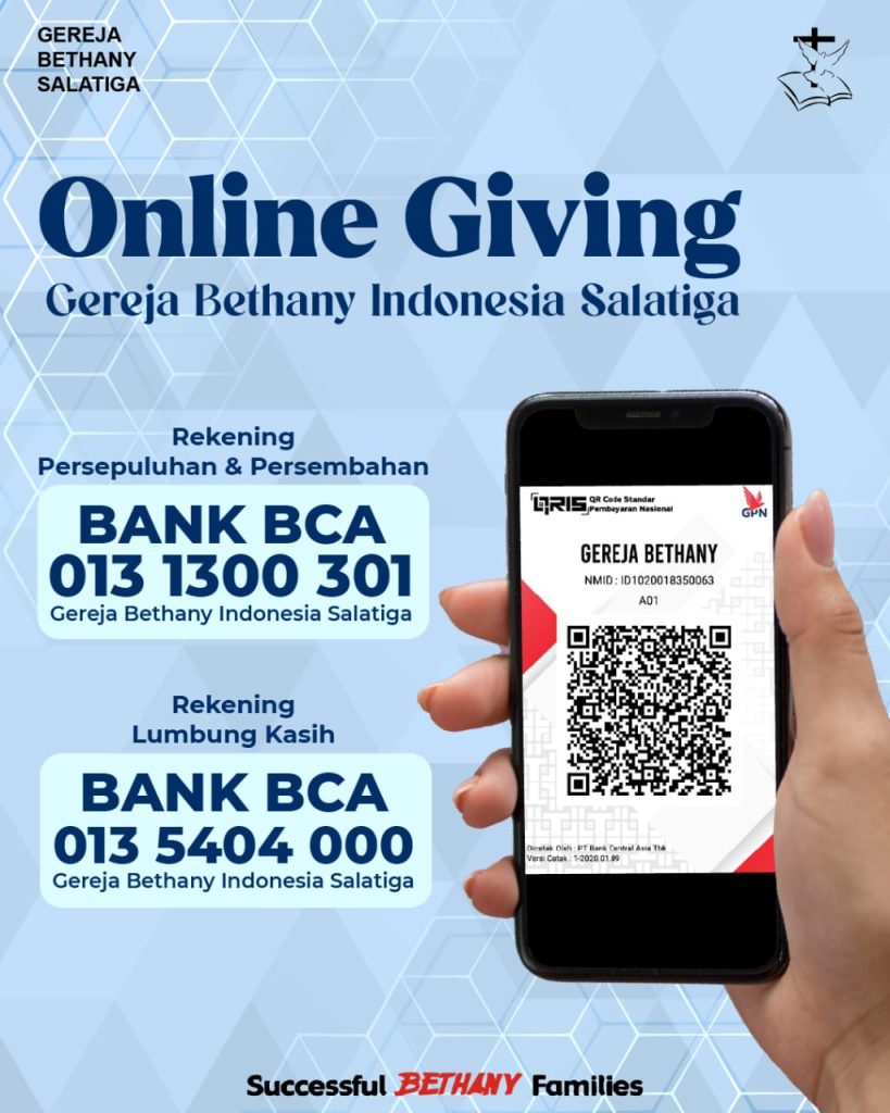 Persembahan dan Persepuluhan BCA : 013-1300301 A/N GEREJA BETHANY INDONESIA